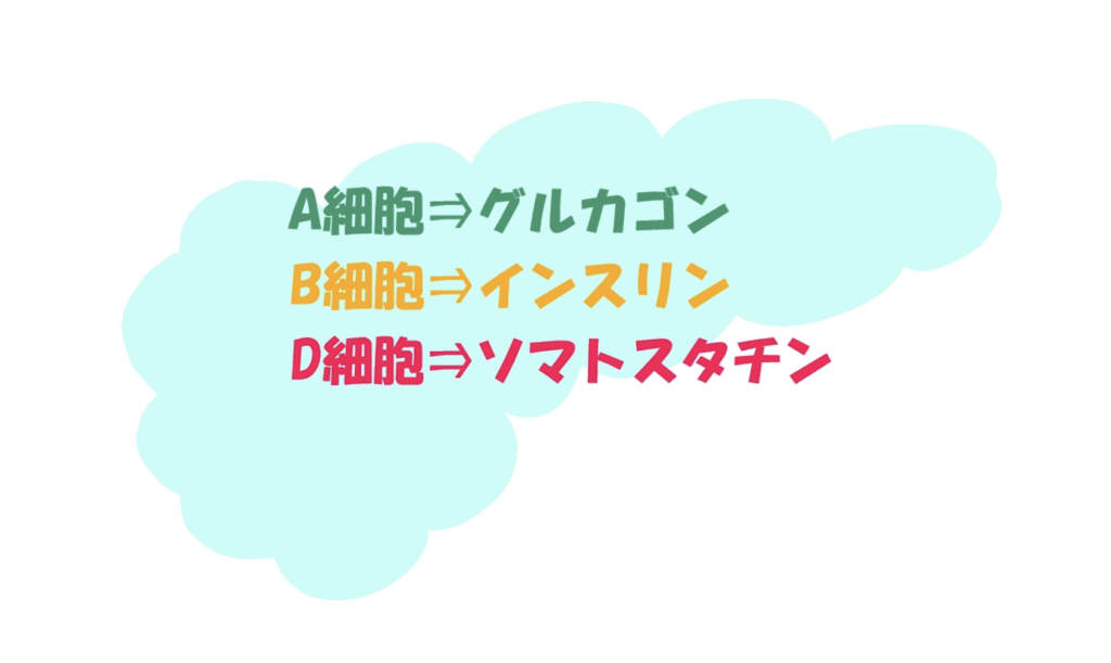 膵臓の中には、「ランゲルハンス島(とう)」と呼ばれる小さな細胞の集まりがあります。ここから、血糖値を調整するためのホルモンが分泌されています。代表的なのが、