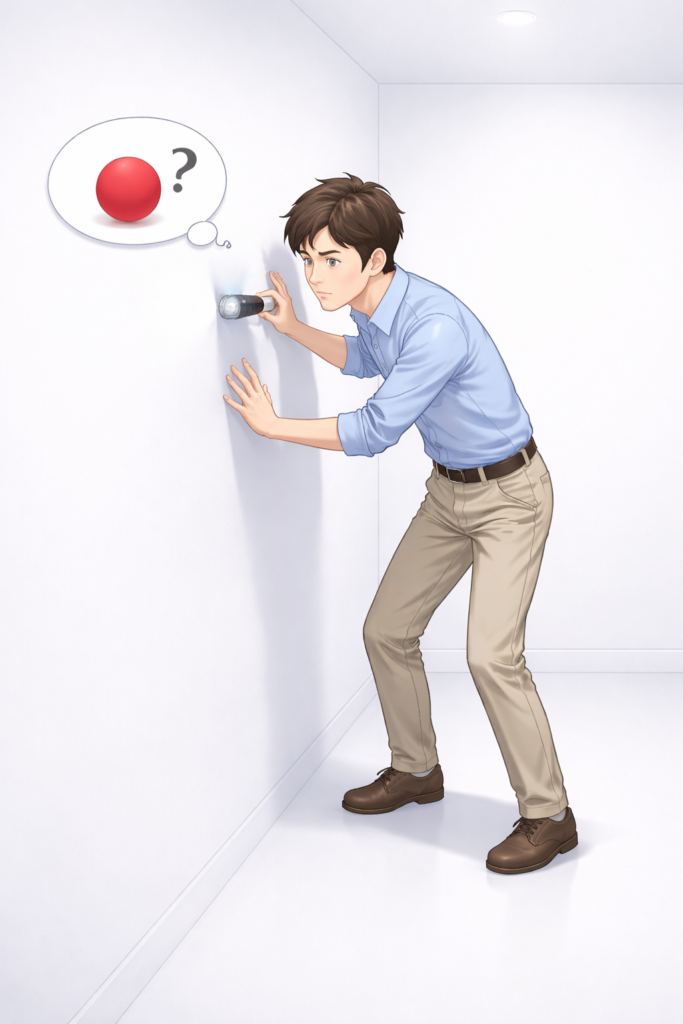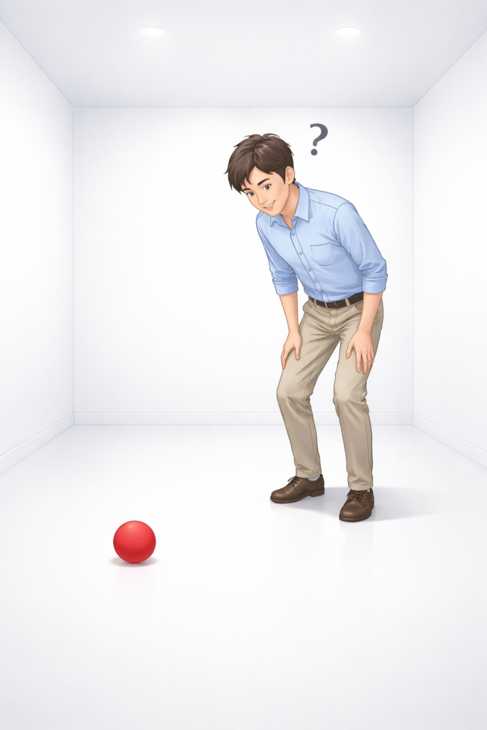 たとえば、壁や天井、床が真っ白な部屋を想像してください。その床の上に、赤いボールがおいてあります。あなたがその部屋に入れば、赤いボールにすぐ気がつくでしょう。