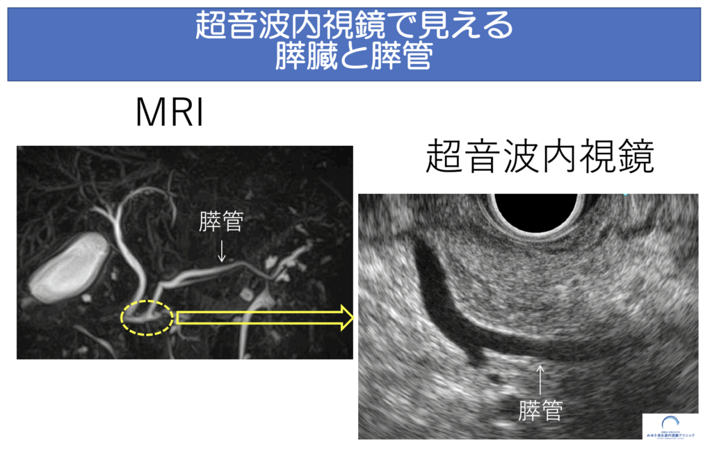 MRIやCTではわかりにくい小さな膵がんや嚢胞の早期発見に役立ちます。